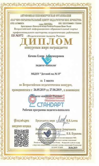 • Диплом за участие во Всероссийском педагогическом конкурсе "Педагог-психолог России"